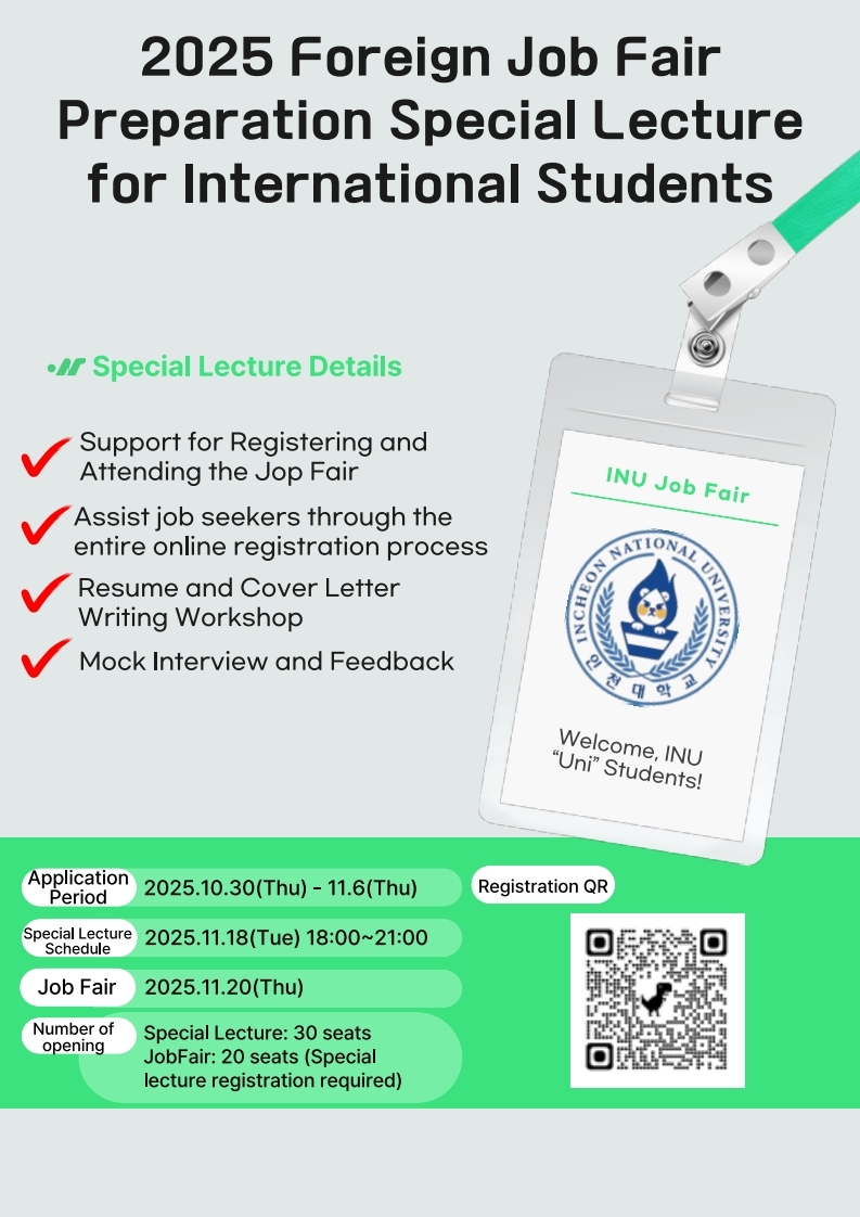 [2025-2학기 외국인 유학생 취업지원 특강 및 채용박람회 개최]2025 Foreign Job Fair Preparaion Special Lecture for International Students