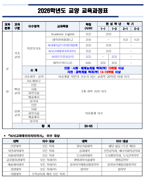 2026학년도 입학생부터 AI와인간중심윤리 필수 이수해야합니다.