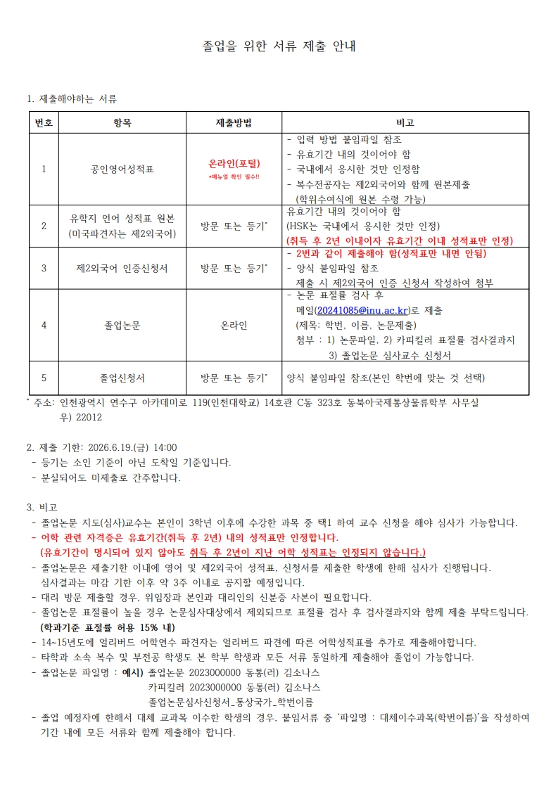 ※수료생은 졸업신청을 인천대 Potal로 신청 후 서류 제출을 해주시기 바랍니다.